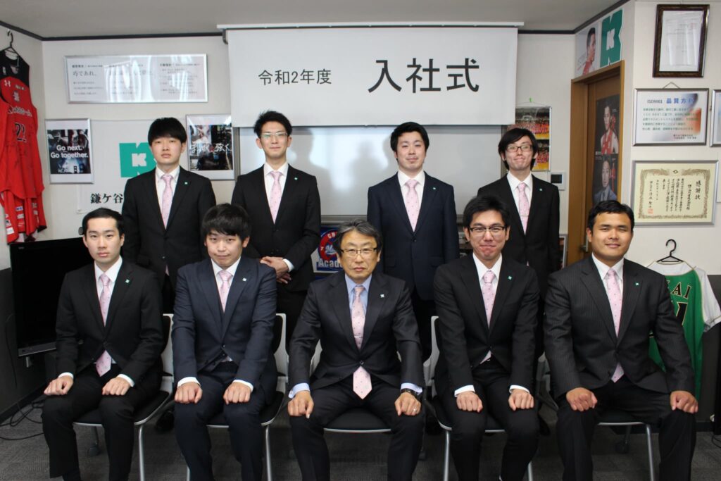 令和2年度の入社式を行いました。今年は総勢9名(本社8名、白根支店1名)入社しました。