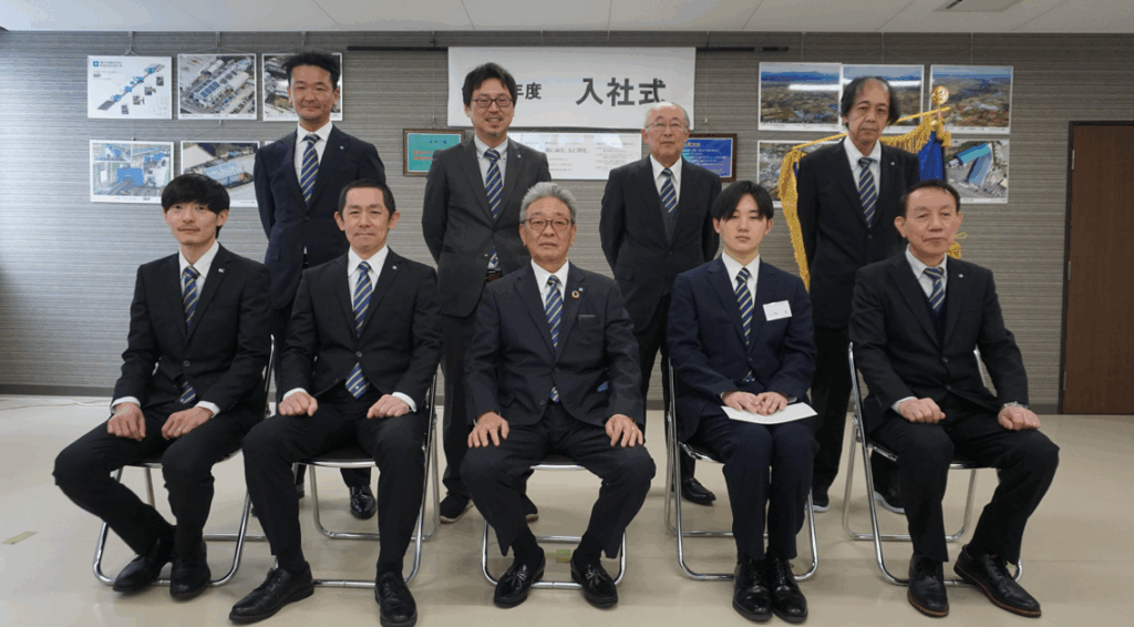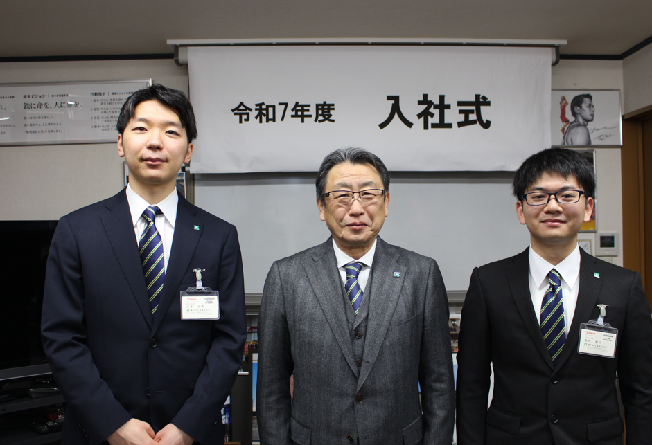令和7年度の入社式を行いました。今年は本社2名、白根支店1名が入社しました。
